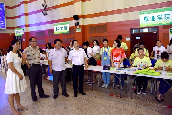 8月23日下午,我院新生入学接待准备工作紧张有序进行。学院党总支书记苏蓉、院长呼天明、党总支副书记阮鹏及全体辅导员,来到北绣山活动中心迎新现场,检查学院2019级新生入学接待准备工作,并慰问了迎新工作人员。