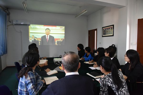 9月29日上午10点,必赢线路检测3003no1组织没课的师生于学院409会议室观看中华人民共和国国家勋章和国家荣誉称号颁授仪式。